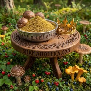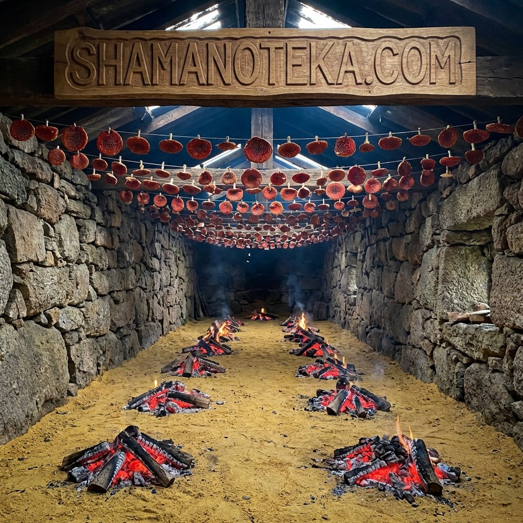 Причастие Дарами: Достаёт Шаман из тайных закромов Золотой Эликсир — мёд густой, в котором сила Мухомора Королевского да Ежовика мудрого растворена. Каждая капля этого зелья — как ключ от дверей, что в глубины разума ведут.
